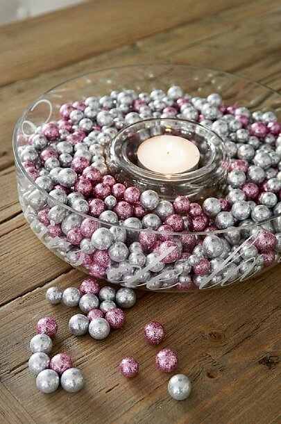 Жемчуг повсюду. Сочетание декоративного серебра и розового жемчуга разных размеров. Финальный штрих для отделки интерьера. Идеальный материал для декора ваз и чаш одним взмахом руки.