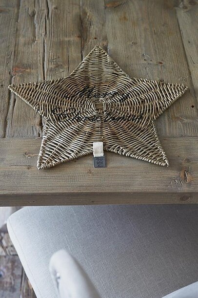 Набор ротанговых столовых приборов в виде звезд с надписью "Merry Christmas".