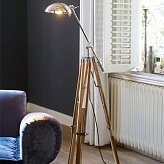 Эта стильная напольная лампа с деревянным штативом и алюминеевым абажуром будет выглядеть великолепно рядом с креслом для двоих или диваном. Любимая книга и бокал вина и вам гарантирован прекрасный вечер.