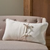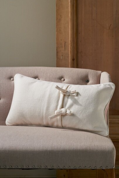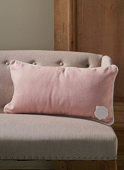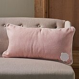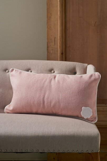 Продолговатая подушка из элегантной петербургской зимней коллекции. Передняя часть выполнена в пастельных розовых тонах из твидовой ткани, задняя - из мягкого белого войлока. Изделие украшает оригинальная окантовка.